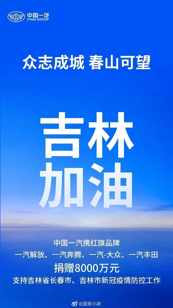 中國一汽捐款8000萬元