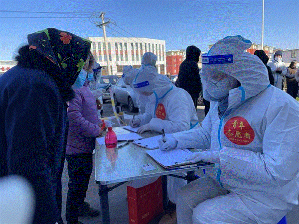 兵器工業(yè)集團吉林江機特種工業(yè)成立青年防疫志愿者隊伍,支援吉化體育場核酸檢測采樣點。
