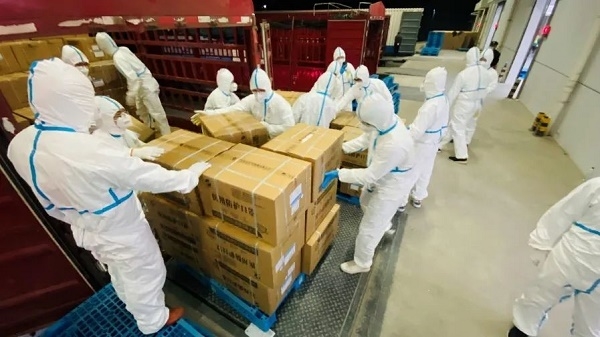 國藥控股是國藥集團(tuán)核心企業(yè)和中央醫(yī)藥物資儲備單位,承擔(dān)著大量藥品和物資保供任務(wù)。近日,國藥控股接到上海市防疫防控物資保障緊急任務(wù),在靜安本部倉庫滿倉的情況下,迅速啟用浦東鹿順路國大復(fù)美倉庫。疫情就是命令,防控就是責(zé)任。面對新啟用倉庫的巨大裝卸任務(wù),國藥控股黨委緊急動員組織了志愿者隊(duì)伍第一時間加入一線支援。到4月10日晚,為了加快速度,在市委組織部、市經(jīng)濟(jì)信息化工作黨委的大力支持協(xié)調(diào)下,中國船舶集團(tuán)所屬外高橋造船18名青年志愿者來到國藥控股鹿順路倉庫,與國藥控股志愿者團(tuán)隊(duì)一起裝卸防控物資,并肩“申”情守“滬”!