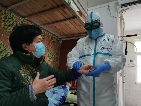 (中醫(yī)師為武漢新冠肺炎患者把脈)