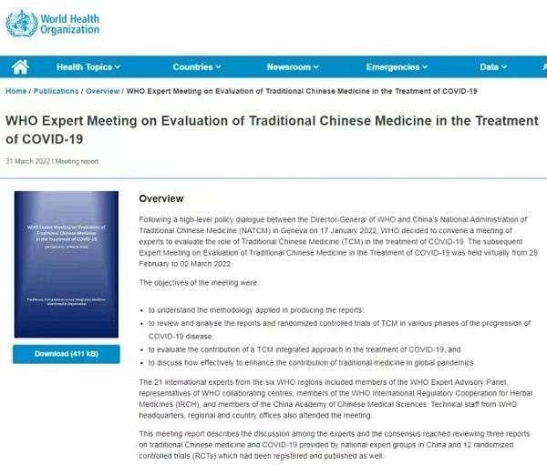 (世界衛(wèi)生組織發(fā)布肯定中醫(yī)藥治療新冠安全有效的報告)