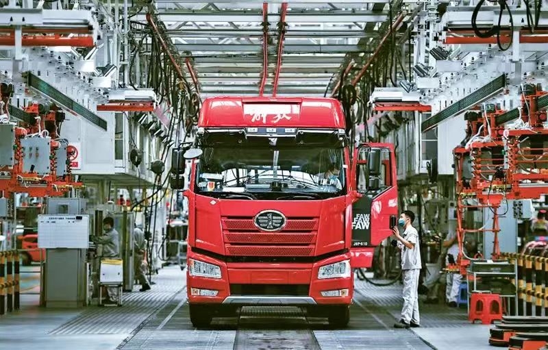 企業(yè)強(qiáng)則國(guó)家強(qiáng),加快建設(shè)世界一流企業(yè)是全面建設(shè)社會(huì)主義現(xiàn)代化國(guó)家的重大任務(wù),是新時(shí)代國(guó)有企業(yè)的戰(zhàn)略目標(biāo)。近來(lái),一汽解放集團(tuán)股份有限公司生產(chǎn)按下“加速鍵”。圖為2022年6月15日,工人在位于吉林長(zhǎng)春的一汽解放總裝車(chē)間內(nèi)裝配車(chē)輛。 新華社記者 許暢/攝