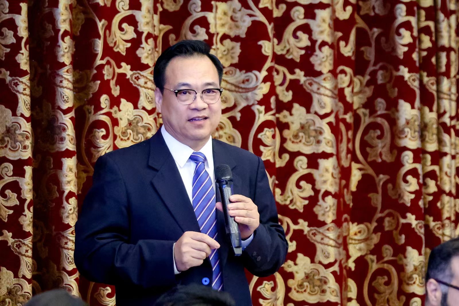 國藥集團國藥控股黨委書記、董事長于清明回答記者提問。