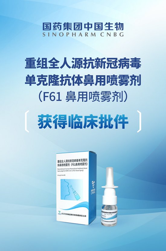 今年7月22日,國藥集團(tuán)中國生物武漢生物制品研究所申報(bào)的重組全人源廣譜新冠病毒單克隆抗體注射液(F61)獲得國家藥品監(jiān)督管理局臨床試驗(yàn)批件,并同步推進(jìn)F61鼻用噴霧劑的研究。