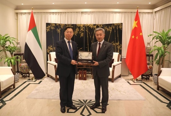 2022年11月30日,駐阿聯(lián)酋大使張益明會(huì)見中國醫(yī)藥集團(tuán)有限公司(國藥集團(tuán))董事長劉敬楨一行。國藥集團(tuán)副總經(jīng)理董增賀、生物制品事業(yè)部總裁朱京津、首席科學(xué)家張?jiān)茲约笆桂^周飆公參、李曉東參贊在座。