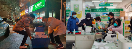 藥店是服務(wù)群眾最直接的窗口單位。近期購藥需求激增,一線藥店迎來嚴(yán)峻考驗(yàn)。面對時(shí)間緊、任務(wù)重以及非戰(zhàn)斗減員的壓力,北京國大金象開通綠色通道,加速商品資質(zhì)審核,依據(jù)日報(bào)確定庫存商品分配原則,抽調(diào)管理人員520余人次支援物流,每天深夜將防疫藥品配送到店,所有門店均安排夜間值守和網(wǎng)上購藥,24小時(shí)服務(wù)人民群眾。
