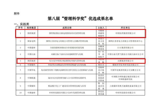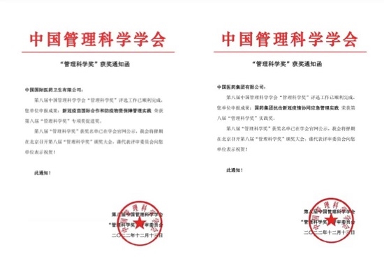 為認(rèn)真落實(shí)加快構(gòu)建新發(fā)展格局、著力推動(dòng)高質(zhì)量發(fā)展的戰(zhàn)略部署,中國管理科學(xué)學(xué)會(huì)組織開展第八屆“管理科學(xué)獎(jiǎng)”申報(bào)活動(dòng)。集團(tuán)工業(yè)發(fā)展與科研管理部積極組織總部各部門、各子公司進(jìn)行申報(bào),經(jīng)中國管理科學(xué)學(xué)會(huì)評(píng)審辦公室規(guī)范性審核,專家組初審、復(fù)審、終審,國藥集團(tuán)申報(bào)的實(shí)踐類《國藥集團(tuán)抗擊新冠疫情協(xié)同應(yīng)急管理實(shí)踐》和國藥國際申報(bào)的促進(jìn)類《新冠疫苗國際合作和防疫物資保障管理實(shí)踐》獲得“第八屆管理科學(xué)獎(jiǎng)”。