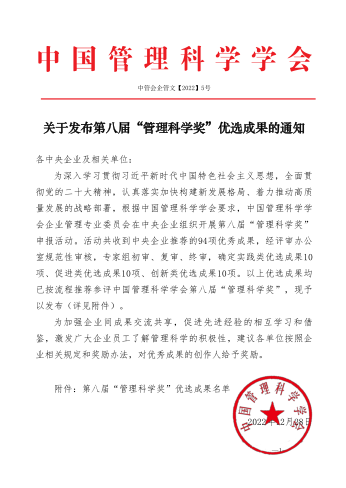 集團(tuán)本次獲得的2項(xiàng)管理科學(xué)獎(jiǎng)及6項(xiàng)優(yōu)選成果,體現(xiàn)了集團(tuán)認(rèn)真落實(shí)加快構(gòu)建新發(fā)展格局、實(shí)施高質(zhì)量發(fā)展戰(zhàn)略,落實(shí)集團(tuán)“十四五”規(guī)劃戰(zhàn)略目標(biāo)、深入推動(dòng)國企改革取得了實(shí)效。體現(xiàn)了集團(tuán)近年來上下團(tuán)結(jié)一心、攻堅(jiān)克難、銳意進(jìn)取,邁向世界一流企業(yè)的管理能力及水平。